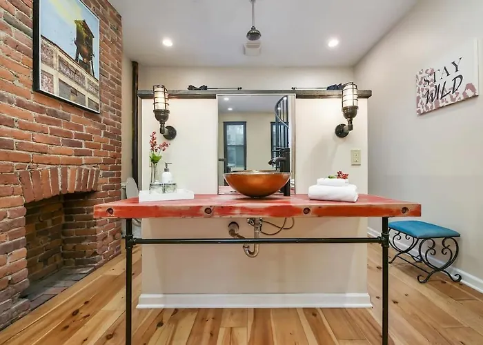 Nestled conveniently at just 30 kilometers from the bustling Pittsburgh International Airport, Hostwise Stays offers an ideal retreat for travelers seeking both relaxation and accessibility. This contemporary accommodation provides guests with free parking, ensuring a hassle-free arrival and departure. The holiday home's distinct charm is marked by its cool, inviting spaces and unique spiral stairs that lead to beautifully designed guest rooms. At Hostwise Stays Pittsburgh, each room is a testament to comfort, blending modern design with a warm ambiance. Guests can revel in the serene setting while enjoying thoughtful amenities that enhance their stay. Every room is equipped with essential features, providing a perfect haven after a long day of exploring the city or conducting business.